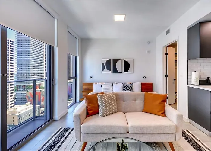 Het appartement biedt een complete keuken met alle benodigde toestellen. Ocean View Designer Studio, Pool is op 100 meter van Biscayne Boulevard & Northeast 6th Street bushalte en binnen een paar straten van Bayfront Park treinstation.